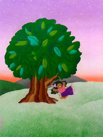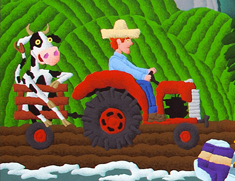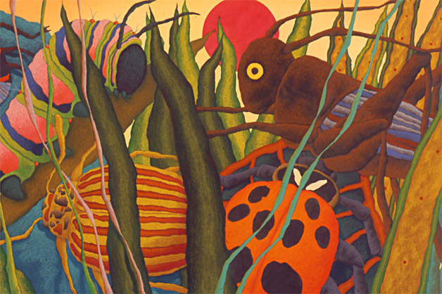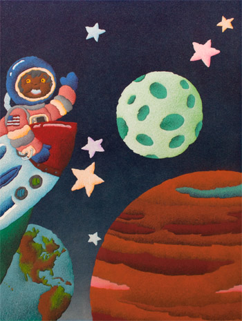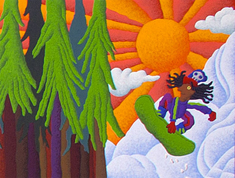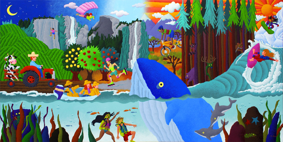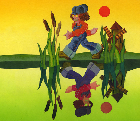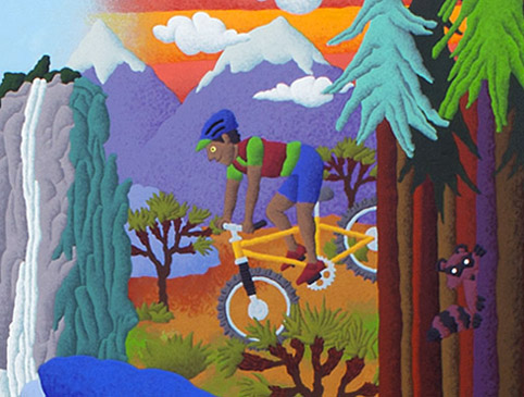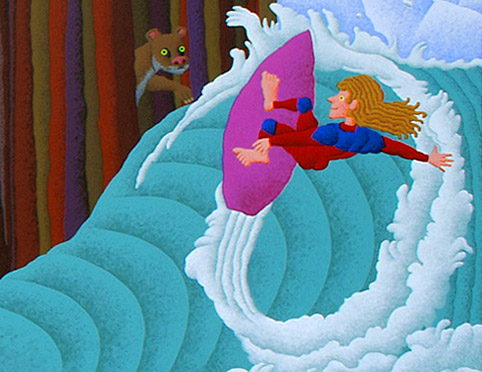 I started out creating television graphics for NBC, which out of necessity, required me to work in myriad styles. I’ve since narrowed my concentration. The illustration style on this page has been requested much for children’s products over the years, so remains in my quiver. In fact, I just completed a 3’ x 6’ painting, in this flavor, for the Valley Children’s Hospital, in Madera County, CA. I’m proud to work on projects of this kind, which I feel are the very best use of art, to provide temporary escape or distraction to children and their families faced with the most stressful and challenging of situations.